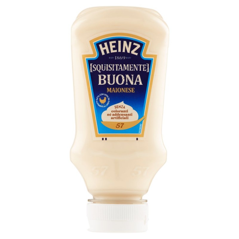 - La nostra maionese e' straordinariamente buona, Cremosa e Delicata, fatta solo con ingredienti della migliore Qualita'. / Ingredienti: Olio di colza 68%, Acqua, Tuorlo d'uovo pastorizzato* 5%, Aceto di alcoole, Zucchero, Amido, Sale, Semi di senape, Spezie, Antiossidante (calcio disodico EDTA), * Di uova da allevamento all'aperto
