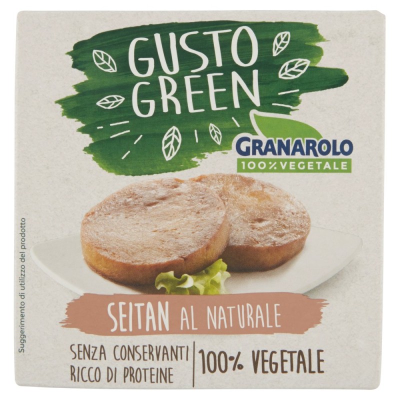 - Bonta' 100% vegetale / Il seitan naturale Granarolo 100% Vegetale si puo' utilizzare scaldato semplicemente in padella, ma e' anche la base ideale per la preparazione di tante ricette vegano o vegetariane. / - Ricco di proteine / - Adatto a una alimentazione vegana / - 2 fette pronte in padella in pochi minuti / Ingredienti: Farina di grano tenero tipo '0' 60%, Acqua, Salsa di soia (acqua, soia, grano duro integrale, sale marino), Zenzero, Puo' contenere tracce di sedano, frutta a guscio, semi di sesamo, senape e lupini