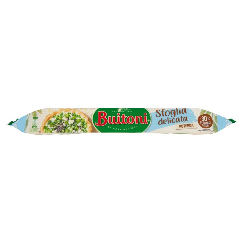 La SFOGLIA DELICATA BUITONI e' la sfoglia con il 30% di grassi saturi in meno rispetto alla SFOGLIA ROTONDA BUITONI. Una sfoglia unica, dal gusto leggero, capace di esaltare ogni tipo di ripieno, anche quelli dal gisto piu' delicato. La Sfoglia Delicata Buitoni e' leggera e poco unta, perfetta per preparare piatti sfiziosi quando vuoi. Come le altre Sfoglie Buitoni, resta sempre friabile e croccante. Niente sostiene la tua fantasia come lei, qualsiasi ripieno tu voglia utilizzare...i tuoi piatti sono sempre perfetti! Scopri tutti i prodotti e le ricette BUITONI su www.buitoni.it / / - Sfoglia rotonda leggera gia' stesa ideale per torte salate, vol au vent e strudel / - Con il 30% di grassi saturi in meno rispetto alla SFOGLIA ROTONDA BUITONI / - Friabile e dal gusto delicato, capace di esaltare ogni tipo di ripieno, anche quelli dal gisto piu' delicato / - Senza coloranti, senza conservanti e senza grassi idrogenati / - Con carta da forno / / Per un gusto leggero e sorprendente, prova la Torta delicata con fiori di zucca e nuvole di sfoglia / / INGREDIENTI / 2 confezioni di PASTA SFOGLIA DELICATA BUITONI / 4 Zucchine / 5 Fiori di zucca / 200 g di ricotta / Uova / 50 g di Parmigiano / 1 cucchiaino di sale / 1 bicchiere di latte / / PREPARAZIONE / Prima di tutto srotolate la prima sfoglia e con l'aiuto di alcuni stampini o semplicemente a mano libera, con un coltello affilato, ritagliate una nuvoletta, da porre poi al centro della torta e 5 foglie. Spennellate con il latte le forme ottenute e infornate a 200° per 10/15 minuti. / Preparate poi il ripieno della torta: grattugiate le zucchine, strizzatele bene e poi unitela alle uova, la ricotta, un pizzico abbondante di sale, il parmigiano e - se vi piace - un po' di basilico tritato. / Ora srotolate la seconda sfoglia e posizionatela in una teglia da 26 cm di diametro, creando un bel bordo ondulato con le dita. Riempitela con la farcitura e infornate a 200° per 25 minuti. Sfornatela, sistematevi sopra i fiori di zucca ben lavati e aperti, in modo da lasciare poi lo spazio per la nuvoletta e le foglie di sfoglia e ripassatela in forno per 5 minuti. Infine sfornatela e decoratela con la nuvola e le altre decorazioni in sfoglia. / / Lasciati ispirare anche dalla SFOGLIA CON FARINA INTEGRALE BUITONI. / / Scopri tutti i prodotti e le ricette BUITONI su www.buitoni.it / Ingredienti: Farina di frumento, Acqua, Oli e grassi vegetali non idrogenati (palma, colza), Sale, Alcol, Glutine di frumento, Succo di limone concentrato, Lievito inattivo, Senza grassi idrogenati