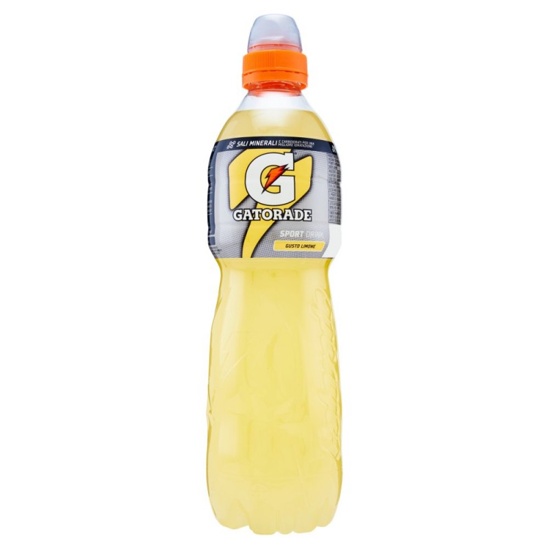 - Sport Drink / Sali minerali e carboidrati / Prestazione / Gatorade contribuisce al mantenimento di prestazioni di resistenza durante lo sport* / Idratazione / Gatorade stimola un piu' efficace reintegro dei liquidi durante lo sport e diminuisce il rischio di disidratazione*. In 5 ottimi gusti / Resistenza / Una bottiglia di Gatorade (500ml) contribuisce a fornire i carboidrati necessari per un'ora di esercizio fisico* / *Le soluzioni di carboidrati-elettroliti favoriscono l'assorbimento dell'acqua durante l'esercizio fisico e contribuiscono al mantenimento di prestazioni di resistenza durante l'esercizio fisico prolungato / / Il prodotto va utilizzato nell'ambito di una dieta variata ed equilibrata ed uno stile di vita sano. / Ingredienti: Acqua, Zucchero, Maltodestrine, Acidificante (acido citrico), Sali minerali (sodio cloruro, sodio citrato, monopotassio fosfato, ossido di magnesio), Antiossidante (acido ascorbico), Emulsionanti (E414, E445), Aromi naturali, Edulcoranti (sucralosio, acesulfame K), Colorante (betacarotene)