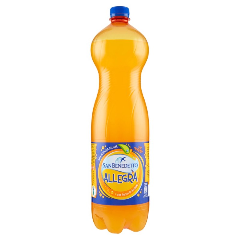 - L'allegria e' contagiosa. Lo sapevi? / Lasciati catturare dalla vivace freschezza delle bibite San Benedetto: un sapore sincero e tutto italiano che si trasforma in un'esplosione di bollicine e allegria. Stappa il divertimento e condividi il piacere di una freschezza genuina e verace! / Autentica Allegria italiana! / Ingredienti: Acqua, Succo d'arancia (12%) da concentrato, Zucchero, Anidride carbonica, Fruttosio (0,5%), Acidificanti (acido citrico, acido ortofosforico), Aromi, Conservante: potassio sorbato, Sale, Antiossidante: acido ascorbico, Edulcorante: sucralosio, Stabilizzante: E445, Colorante: beta carotene, Senza glutine