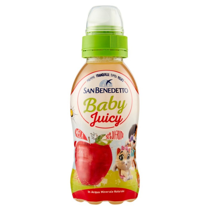 La nuova golosa bevanda con tanta frutta. Solo ingredienti naturali per rispettare l'ambiente e offrire il meglio ai piu' piccoli. / / Senza glutine / Senza conservanti / Senza coloranti / Ingredienti: Acqua minerale (65%), Succo di mela (30%) da concentrato, Zucchero, Fruttosio (0,5%), Acidificante: acido citrico, Aromi, Antiossidante: acido ascorbico, Edulcorante: sucralosio