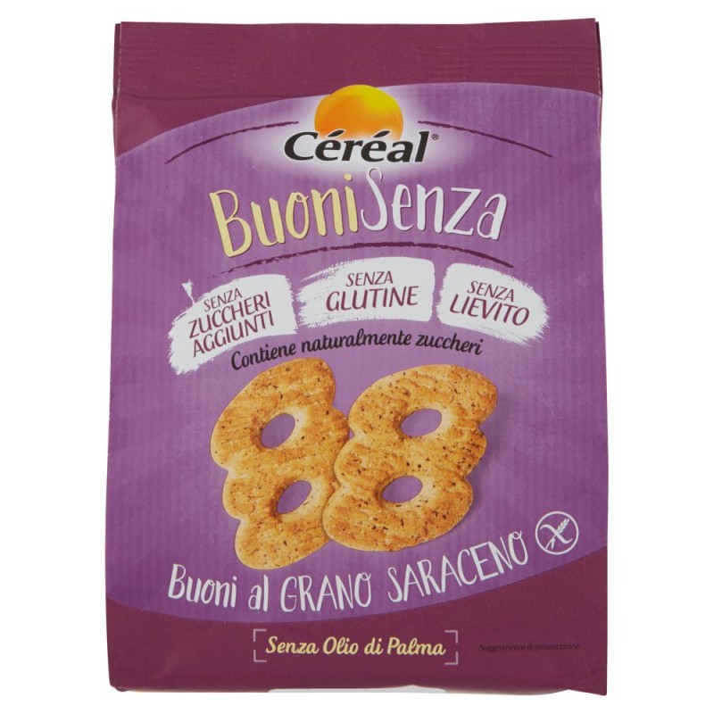 Fecola di patate, Edulcoranti: maltitolo, Amido di mais, Farina di riso, Olio di girasole, Farina di grano saraceno 11%, Uova, Latte scremato in polvere, Emulsionanti: mono- e digliceridi degli acidi grassi, Aromi, Sale, Antiossidanti: estratto di rosmarino, Contiene lattosio, Puo' contenere tracce di soia, Un consumo eccessivo puo' avere effetti lassativi, Ricetta senza lievito e agenti lievitanti