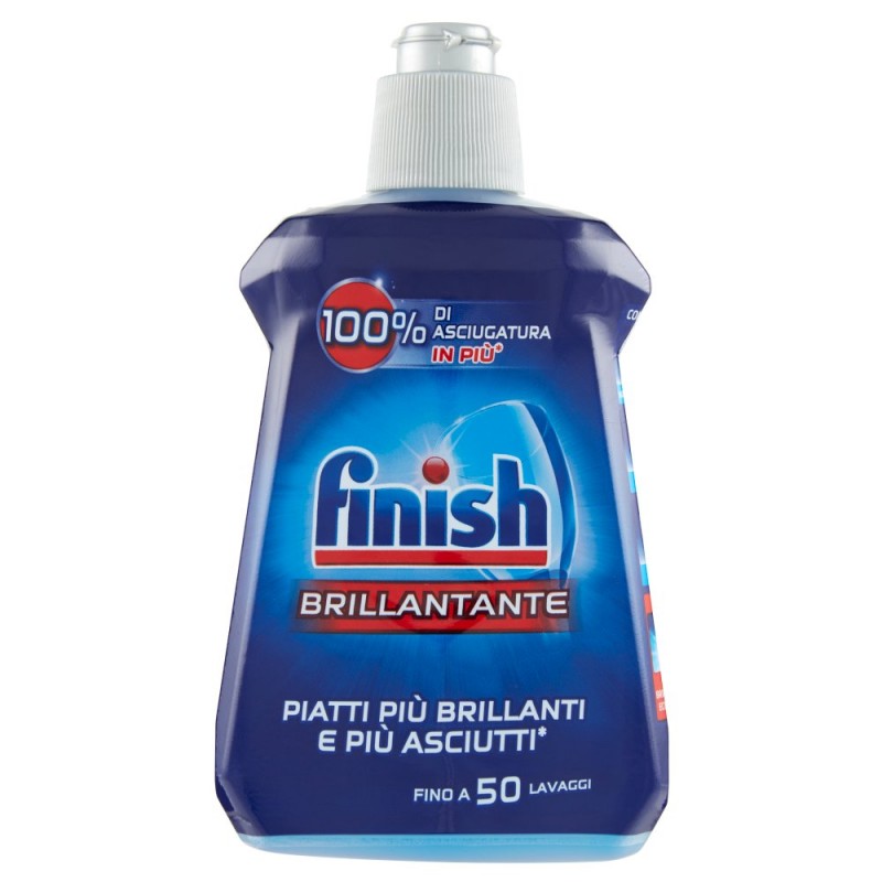 - Ottieni il 100% di Asciugatura in piu'* con Finish Brillantante, per piatti e bicchieri ancora piu' brillanti. / *Asciugatura 2 volte maggiore usando Finish Brillantante insieme al detergente Finish rispetto al detergente da solo. / / Combatte: / - Macchie d'acqua / - Aloni / - Calcare / Per: / Una brillantezza eccezionale / Ingredienti: Composizione Chimica (per informazioni sugli ingredienti www.rbeuroinfo.com):, 5-15% tensioattivi non-ionici, Preservanti (Methylchloroisothiazolinone, Methylisothiazolinone, Potassiumsorbate)