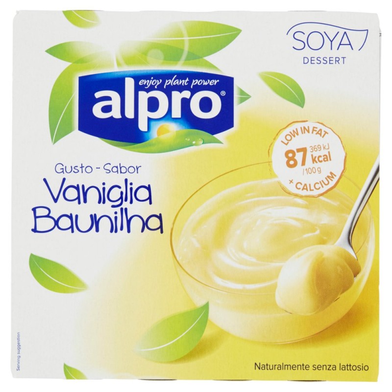 - - 100% vegetale. / - Naturalmente povero di grassi. / - Senza coloranti e conservanti. / - Nutriente e fonte di proteine della soia di alta qualita', che contribuiscono al mantenimento della massa muscolare. / - Facile da digerire perche' naturalmente privo di lattosio. / / I prodotti Alpro utilizzano meno terra e acqua e producono meno CO2 rispetto ai prodotti con latte vaccino. / / Per un'ottima salute si raccomanda una dieta varia e bilanciata ed uno stile di vita salutare. / Ingredienti: Acqua, Zucchero, Semi di soia decorticate (8,6%), Amido modificato, Maltodestrina, Fosfato tricalcico, Estratto di carota, Aroma, Addensanti (pectine, carragenina), Sale marino, Vitamine (B2, B12, D2), Senza latte, derivati del latte e glutine