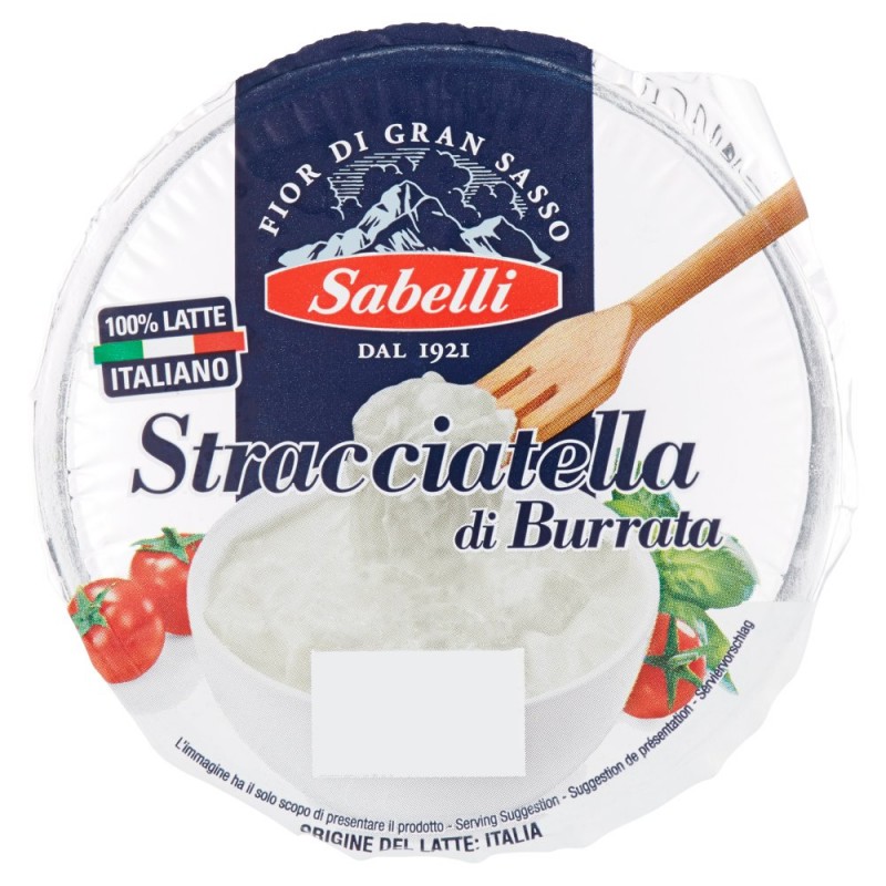 - Mozzarella (latte, sale, caglio, fermenti lattici), Crema di latte 49,6%, Sale