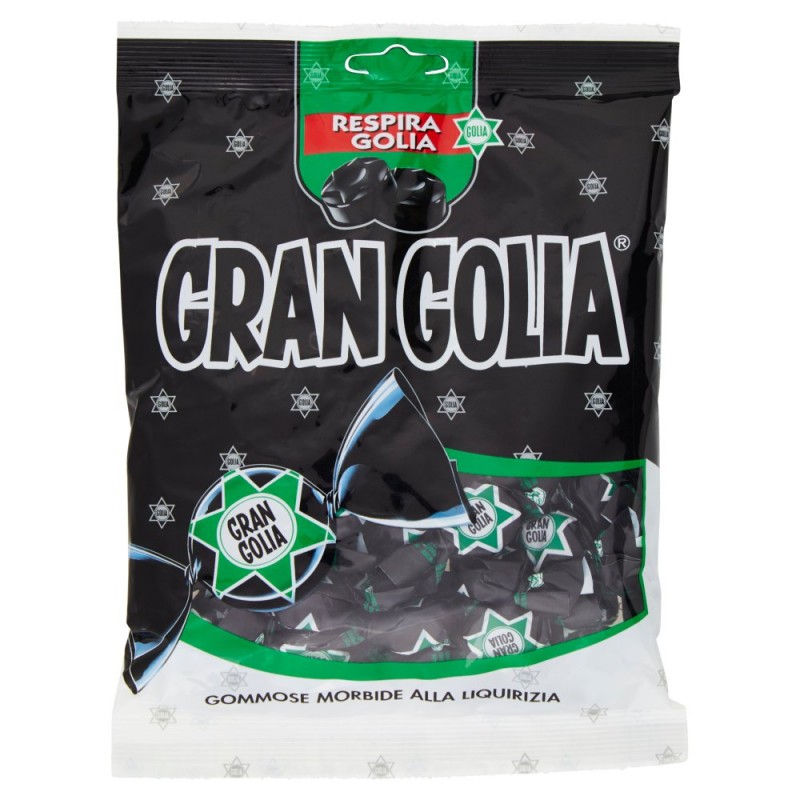 - Prova il gusto, unico e inimitabile di Golia, la gommosa alla liquirizia che ti da' una piacevole sensazione di fresco respiro. / Divertente, simpatica e delicatamente balsamica. / Cosi' unica cosi' Gran Golia. / Ingredienti: Addensante: gomma arabica, Zucchero, Sciroppo di glucosio, Stabilizzanti: sorbitolo, glicerolo, Succo di liquirizia, Fruttosio, Colorante: E150a, Aromi naturali, Olio di cocco