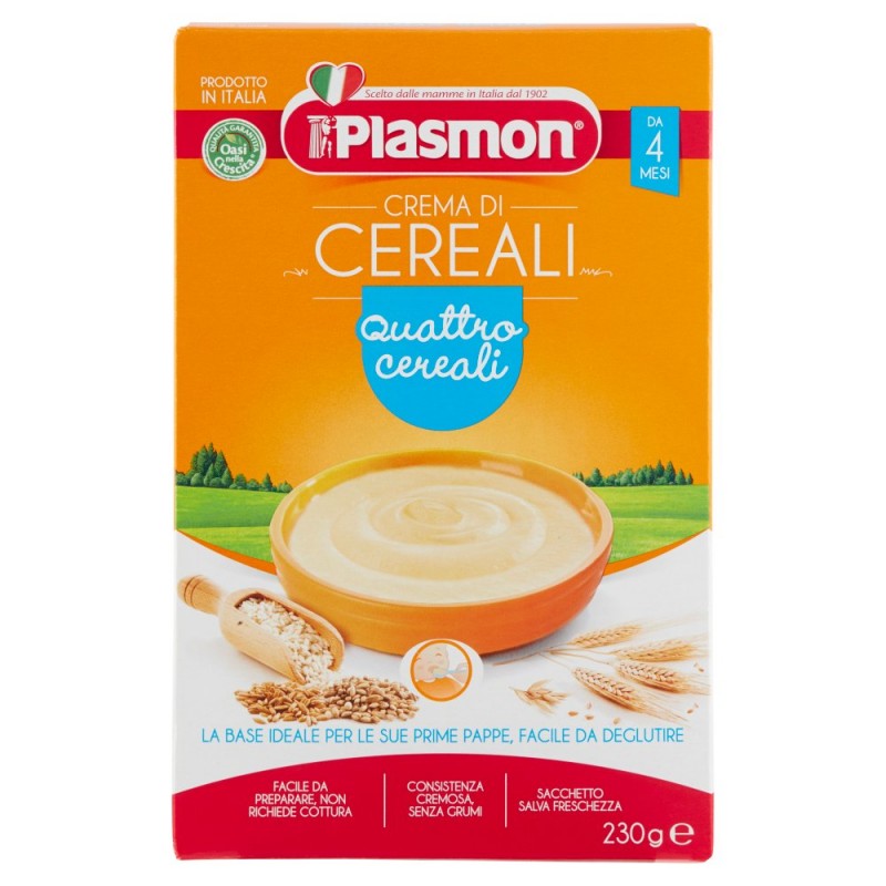 Una ricetta facile da preparare, con tutto il gusto dei cereali per esaltare il sapore della sua pappa / / Qualita' Garantita Oasi nella Crescita / Prodotto in Italia. / Piu' controllo e qualita': / - Solo ingredienti attentamente selezionati e lavorati con cura / - Completa tracciabilita' delle nostre materie prime / Senza conservanti* e coloranti* / *come per legge / Ingredienti: Farine (frumento (25%), riso (19%), orzo (17%), avena (11%)), Farina di frumento diastasata (15%), Calcio fosfato, Calcio carbonato, Vitamina C, Niacina, Acido pantotenico, Riboflavina, Tiamina, Vitamina B6, Puo' contenere tracce di soia e latte, CONTIENE GLUTINE