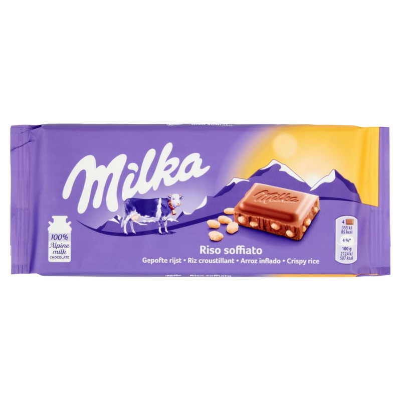 Zucchero, Burro di cacao, Riso (13%), Latte scremato in polvere, Pasta di cacao, Siero di latte in polvere, Grasso del latte, Emulsionanti (lecitine di soia, lecitine di girasole), Sale, Pasta di nocciole, Estratto di malto d'orzo, Aroma, Cacao: 30% minimo nel cioccolato al latte delle Alpi, Puo' contenere altra frutta a guscio e grano