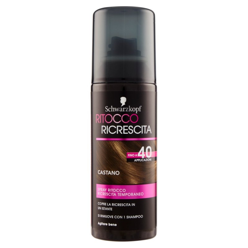 - Spray ritocco ricrescita temporaneo che copre istantaneamente la ricrescita piu' chiara e grigia in pochi secondi. / / Ritocco ricrescita: / Spray ritocco ricrescita temporaneo. Pigmenti cosmetici micro-fini coprono istantaneamente la ricrescita piu' chiara e grigia in pochi secondi. Si asciuga immediatamente e dona un risultato colore armonioso con il resto delle lunghezze. L'applicatore spray di precisione eroga il prodotto solo dove necessario. Si rimuove con 1 shampoo. Riutilizzabile fino a 40 applicazioni. / Ingredienti: Butane, Alcohol denat., Isobutane, Aluminum Starch Octenylsuccinate, Oryza Sativa (Rice) Starch, Isopropyl Myristate, Silica, Stearalkonium Hectorite, Aqua (Water, Eau), Propylene Carbonate, Triethoxycaprylylsilane, Cetrimonium Chloride, CI 77499 (Iron Oxides), CI 77492 (Iron Oxides), CI 77491 (Iron Oxides), CI 77891 (Titanium Dioxide)