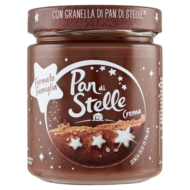 - Crema alle nocciole e cacao (zucchero, olio di girasole, nocciole italiane 13,7%, cacao magro 9,8%, latte scremato in polvere, burro di cacao, emulsionante: lecitina di girasole, aroma vanillina), Granella di biscotto Pan di Stelle 2% [farina di frumento, zucchero, olio di girasole, burro, latte fresco pastorizzato alta qualita', cacao, cioccolato (pasta di cacao, zucchero, burro di cacao, aroma naturale, vaniglia, emulsionante: lecitina di soia), uova fresche, miele, nocciole, amido di frumento, agenti lievitanti (carbonato acido di sodio, carbonato acido d'ammonio), sale, aromi, albume d'uovo in polvere, amido], Puo' contenere tracce di altra frutta a guscio