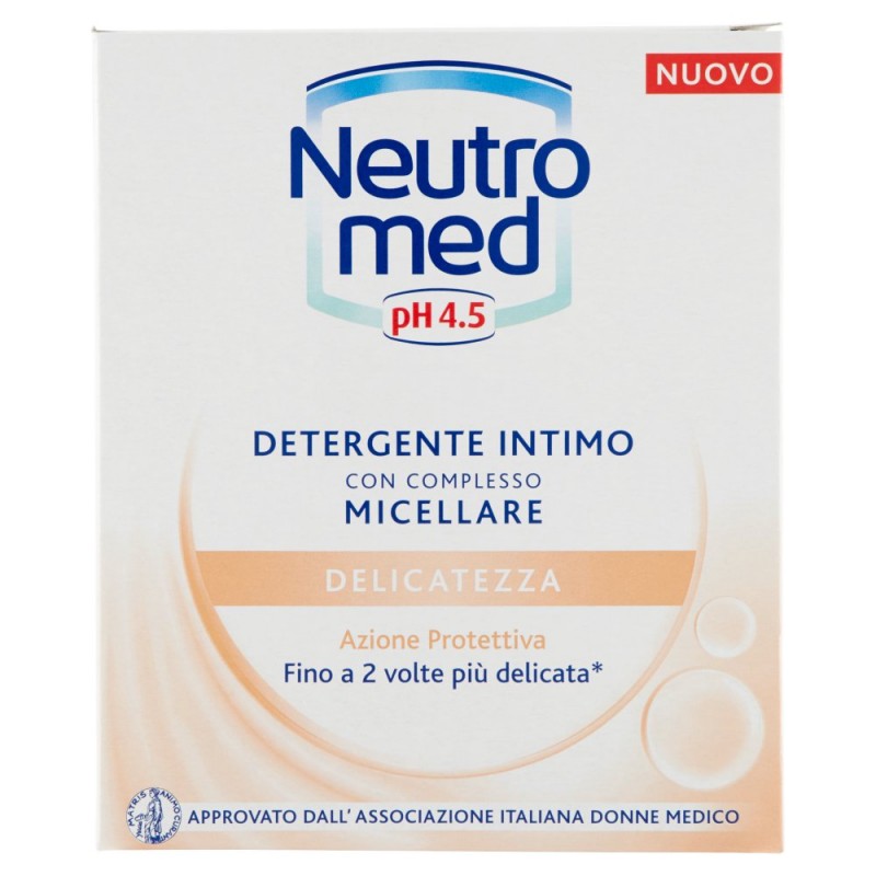 La variante Delicatezza e' specificamente studiata per offrire una protezione efficace e delicata. / La sua formula deterge le tue parti intime rispettandone il pH fisiologico per una protezione fino a 2 volte piu' delicata* e un'azione protettiva che aiuta a prevenire le irritazioni. / E' particolarmente indicato: con il pH 4.5, Neutromed Delicatezza e' ideale per donne in eta' fertile, per un utilizzo quotidiano. / * in comparazione con detergente corpo Henkel standard (valutazione in vitro di tollerabilita') / / Dermatologicamente testato. Senza coloranti artificiali, profumo senza allergeni. / / Approvato da A.I.D.M. / Associazione Italiana Donne Medico / per l'igiene intima quotidiana / / - per donne in eta' fertile / - per uso quotidiano / - pH 4.5 / Ingredienti: Aqua (Water, Eau), Sodium Laureth Sulfate, Sodium Chloride, Disodium Cocoamphodiacetate, Cocamidopropyl Betaine, Glycerin, Allantoin, Lactic Acid, Parfum (Fragrance), Sodium Hydroxide, Citric Acid, Sodium Benzoate, Sodium Salicylate