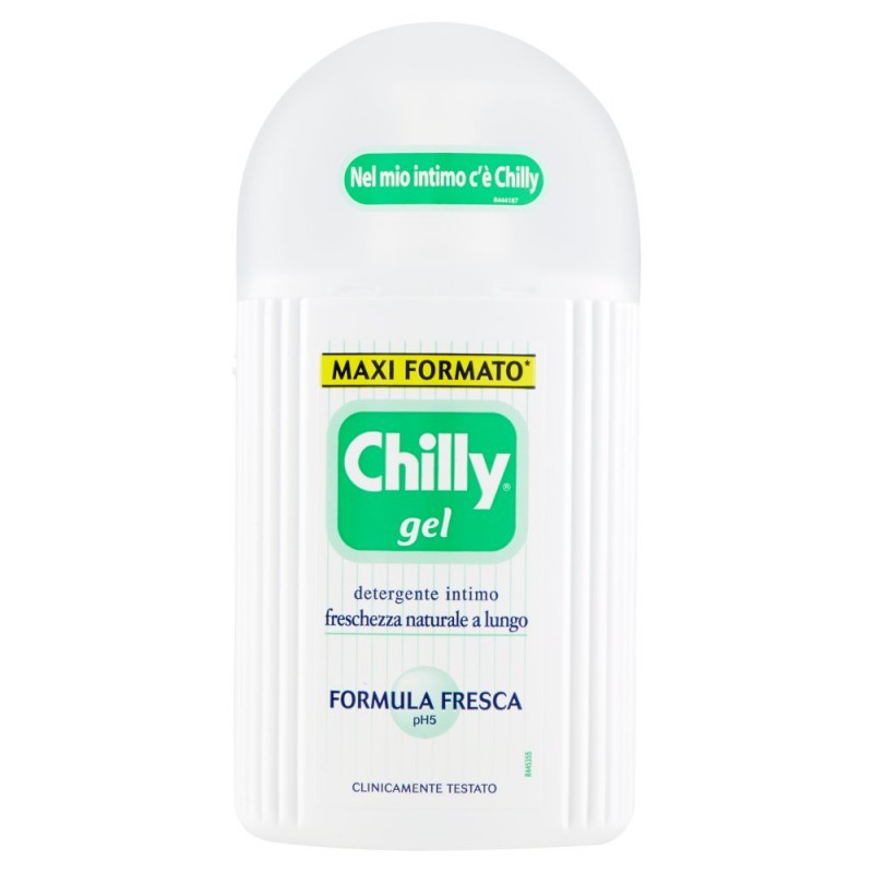 Cerchi freschezza intensa? Prova Chilly Gel. / La sua nuova formula fresca: / - e' arricchita con Mentolo Naturale, che dona freschezza intensa che dura a lungo; / - e' potenziata con molecola antiodore, efficace contro i cattivi odori; / - e' consigliata in caso di bisogno di freschezza estrema, ideale anche per uso quotidiano; / - rispetta il naturale equilibrio fisiologico delle mucose. / / E fuori casa prova le salviettine intime Chilly. / / Clinicamente testato / Formula fresca pH5 / Approvato A.Gi.Co. / Ingredienti: Aqua, Sodium Laureth Sulfate, Cocamidopropyl Betaine, Sodium Chloride, Peg-40 Hydrogenated Castor Oil, Menthol, Lactic Acid, Triclosan, Parfum, Citronellyl Methylcrotonate, DMDM Hydantoin, CI 19140, CI 42051