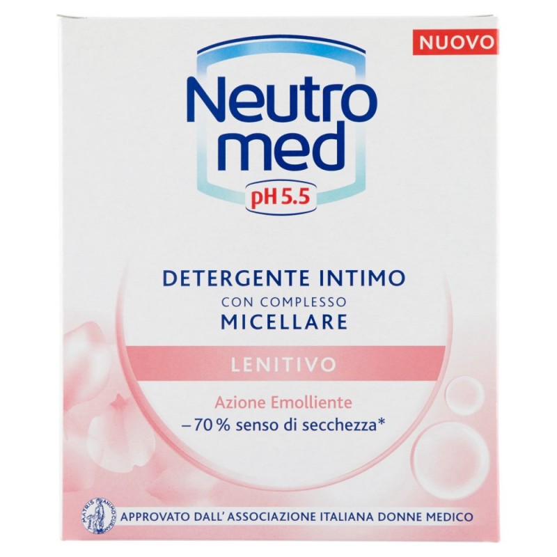 - La variante Lenitivo e' specificamente studiata per una protezione che aiuta a ridurre del 70% il senso di secchezza*. / La sua formula con proprieta' lenitive e addolcenti rispetta il pH fisiologico delle tue parti intime per una dolce protezione emolliente. / E' particolarmente indicato: con il pH 5.5, Neutromed Lenitivo e' ideale in presenza di cambiamenti ormonali e di fastidi intimi, per donne in menopausa. / * percentuale di risposte concordi dopo un test in uso per 30 giorni su 50 donne / / Dermatologicamente testato. Senza coloranti artificiali, profumo senza allergeni. / / Approvato da A.I.D.M. / Associazione Italiana Donne Medico / per l'igiene intima quotidiana / / - in menopausa / - in presenza di fastidi intimi / - pH 5.5 / Ingredienti: Aqua (Water, Eau), Sodium Laureth Sulfate, Sodium Chloride, Disodium Cocoamphodiacetate, Cocamidopropyl Betaine, Allantoin, Lactic Acid, Glycerin, Citric Acid, Parfum (Fragrance), Sodium Hydroxide, Sodium Benzoate, Sodium Salicylate