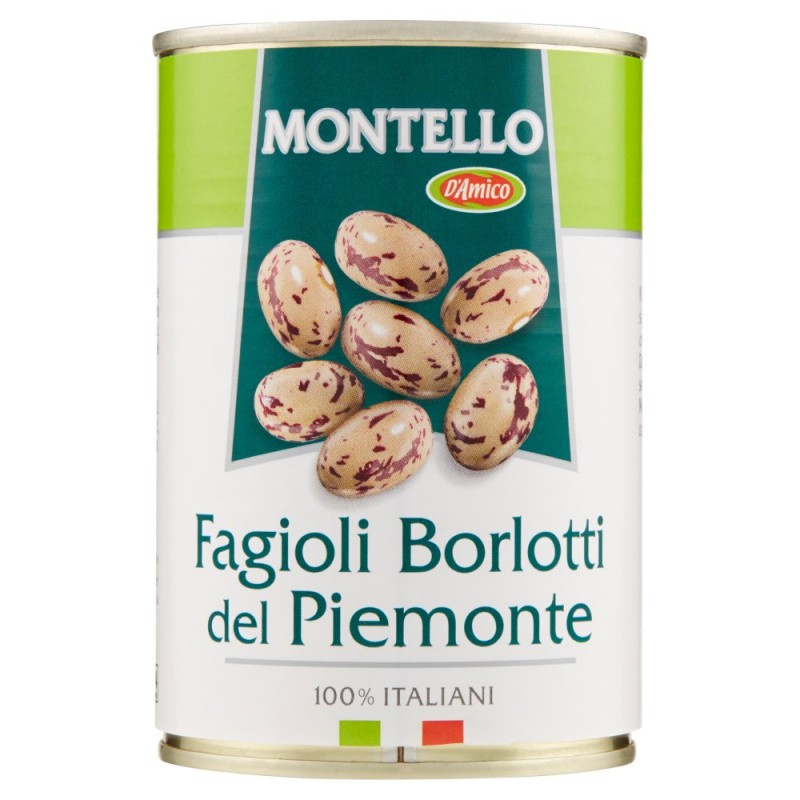 'Fagioli Borlotti del Piemonte' / Il Fagiolo Borlotto del Piemonte, di tenera consistenza, si adatta magnificamente a molte preparazioni, ottimo con la pasta, perfetto per contorni e insalate. Dal sapore intenso ma delicato e' squisito anche semplicemente condito con olio extra vergine di oliva. Montello lo propone nella versione lessata per una cucina semplice e naturale. / Scopri le ricette su: www.damico.it / Ingredienti: Fagioli del Piemonte, Acqua, Sale, Antiossidante acido ascorbico, Correttore di acidita' acido citrico