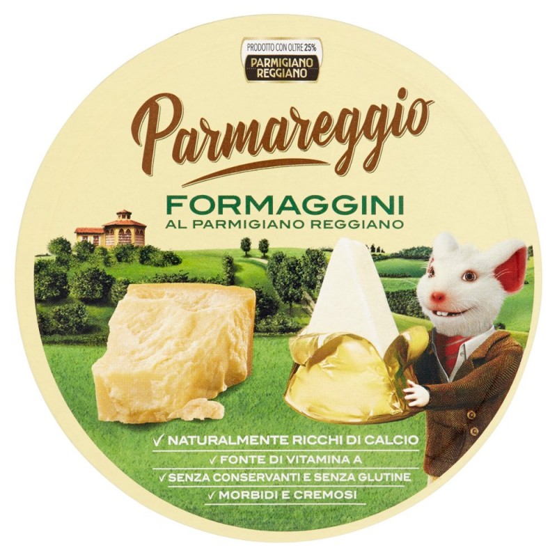 Nell'ambito di una dieta varia ed equilibrata e di uno stile di vita sano, i Formaggini Parmareggio sono ideali anche per il tuo bambino, perche' fatti con Parmigiano Reggiano DOP, naturalmente ricco in calcio, essenziale per lo sviluppo di ossa e fonte di vitamina A. Morbidi e cremosi, dal gusto delicato sono ottimi da sciogliere nelle minestrine e spalmati sul pane per una merenda genuina. / Ingredienti: ''Parmigiano Reggiano DOP'' 25% (latte, sale, caglio), Acqua, Siero di latte, Burro, Proteine del latte, Sale di fusione: citrato di sodio, Correttore di acidita': acido citrico, Senza glutine, Senza conservanti e polifosfati aggiunti