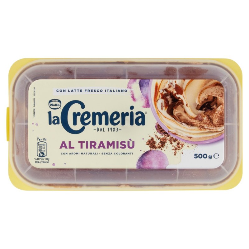- Con latte fresco italiano / - Con aromi naturali / - Senza coloranti / Ingredienti: Latte fresco pastorizzato scremato (italiano) (28%), Acqua, Sciroppo di glucosio, Zucchero, Olio vegetale (cocco), Tuorlo d'uovo, Siero di latte in polvere, Latte scremato in polvere, Farina di frumento, Caffe' solubile in polvere (0,7%), Addensanti (gomma di guar, farina di semi di carrube, carragenina), Cacao (0,6%), Emulsionanti (mono- e digliceridi degli acidi grassi), Aroma naturale, Lattosio, Proteine del latte, Sale, Puo' contenere frutta a guscio