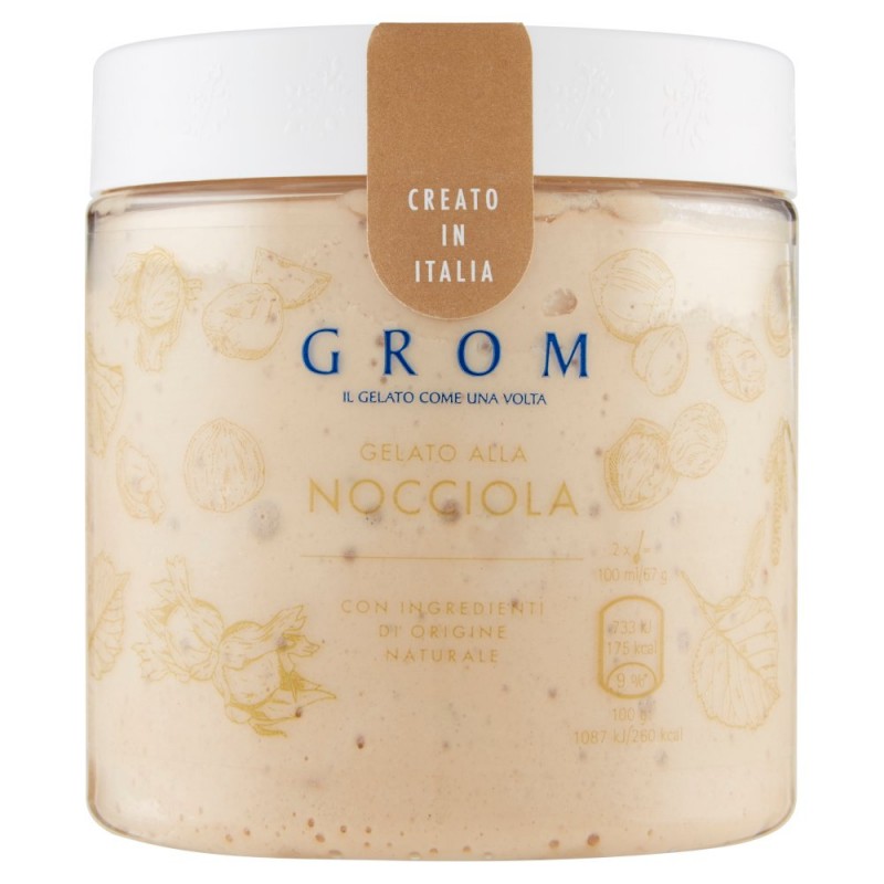 LATTE fresco pastorizzato di Alta Qualita', Pasta di NOCCIOLE (12%), Zucchero, Destrosio, NOCCIOLE (5%), PANNA, Tuorlo d'UOVO, Proteine del LATTE, Addensanti (farina di semi di carrube), Puo' contenere: altra frutta a guscio, Senza glutine