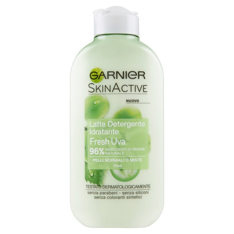 Latte detergente idratante rinfrescante per pelli normali o miste, con 96% di ingredienti di origine naturale, tra cui l'estratto d'Uva, deterge, idrata e rinfresca il viso. Per detergersi all'insegna della naturalita'. / / Latte detergente idratante / La nostra nuova generazione di detergenza con 96% di ingredienti di origine naturale arricchita con estratto d'uva, noto per essere una vera fonte di freschezza. Rimuove in maniera efficace e delicata il make-up e le impurita' per una pelle pulita e rinfrescata. / / Il nostro impegno / Questa formula contiene 96% di ingredienti di origine naturale. I nostri ingredienti possono provenire da fonti diverse, scoprile di seguito. / *Il restante 4% e' composto da ingredienti che garantiscono sensorialita' e la buona conservazione della formula. Questa formula e' senza parabeni, siliconi, oli minerali e coloranti sintetici. / Ingredienti: Ingredients - 967273 8: Qual e' la fonte?, Aqua / Water - Acqua purificata, Isopropyl Palmitate - Cocco, Glycerin - Soia, colza, Propanediol - Fermentazione di spiga di mais, Aloe Barbadensis Leaf Juice Powder - Aloe Vera, Vitis Vinifera Fruit Water / Grape Fruit Water - Uva, Carbomer - *Parte del rimanente 4%, Sodium Hydroxide - *Parte del rimanente 4%, Sodium Phytate - Crusca di riso, Alcohol - Fermentazione di canna da zucchero, Caprylyl Glycol - *Parte del rimanente 4%, Acrylates / C10-30 Alkyl / Acrylate Crosspolymer - *Parte del rimanente 4%, Salicylic Acid - *Parte del rimanente 4%, Parfum / Fragrance - *Parte del rimanente 4%, (F.I.L. B197391/1)