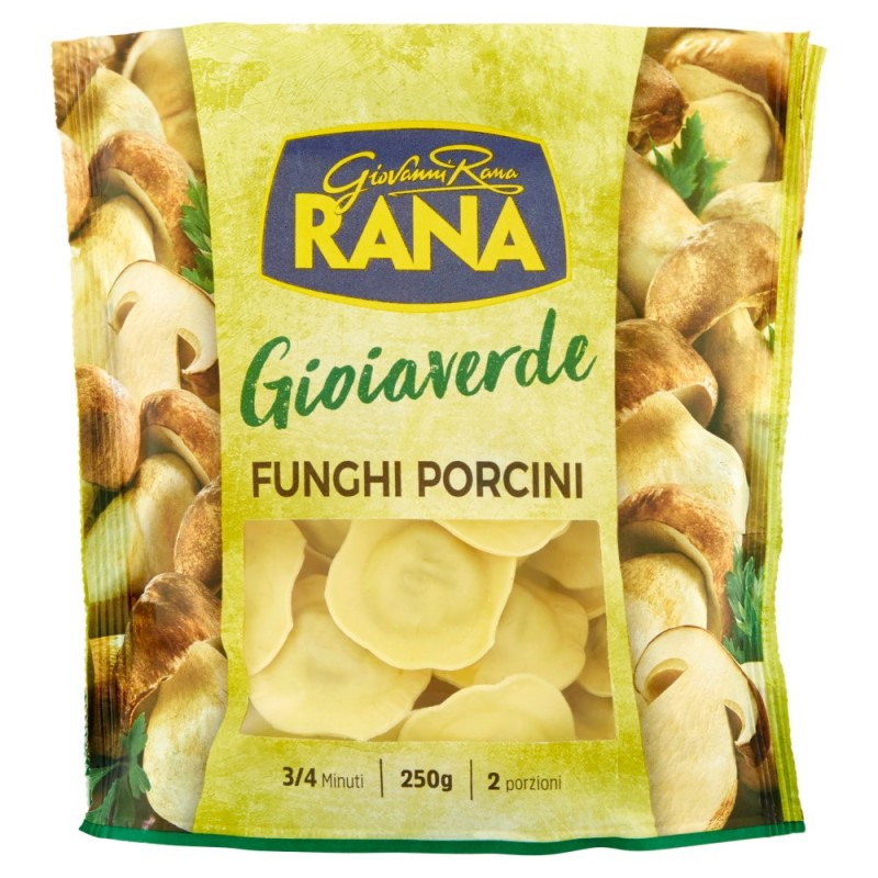 Ripieno 52%: funghi porcini 15% (Boletus edulis e relativo gruppo), pangrattato (farina di grano tenero, acqua, sale, lievito), fibre vegetali, formaggio mozzarella, funghi champignon 8% (Agaricus bisporus), ricotta (siero di latte, latte, sale), amidi, olio di girasole, cipolla, formaggio mascarpone, siero di latte in polvere, vino bianco, aromi naturali (contengono latte, frumento, orzo), sale, prezzemolo, lattosio, aglio in polvere, latte scremato in polvere, pepe nero, Pasta 48%: farina di grano tenero, uova 30%, semola di grano duro, Prodotto in uno stabilimento che utilizza anche frutta a guscio, pesce, crostacei, molluschi e sedano