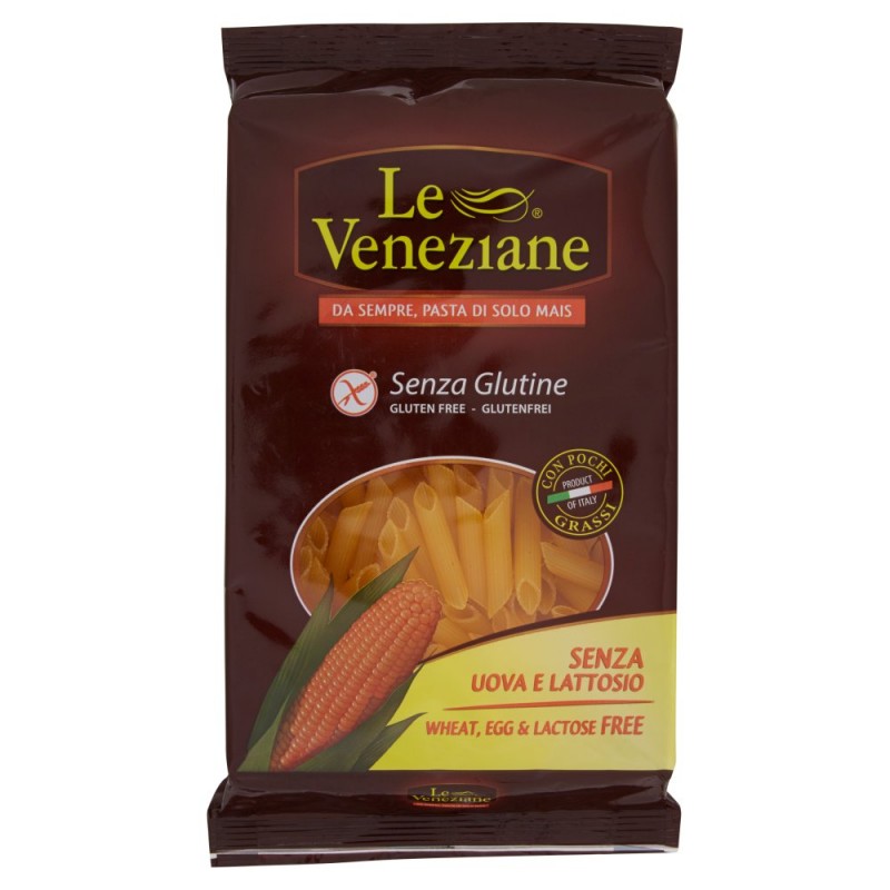 Con mais italiano selezionato / / Dall'esperienza consolidata nei decenni da Molino di Ferro nella lavorazione del mais ha origine la pasta senza glutine 'Le Veneziane'. / La meticolosa selezione del miglior mais italiano, l'ottima tenuta in cottura e la proprieta' di trattenere il condimento garantiscono un primo piatto gustoso, alternativo e gratificante. / Ingredienti: Farina di mais, Emulsionanti: mono e digliceridi degli acidi grassi di origine vegetale