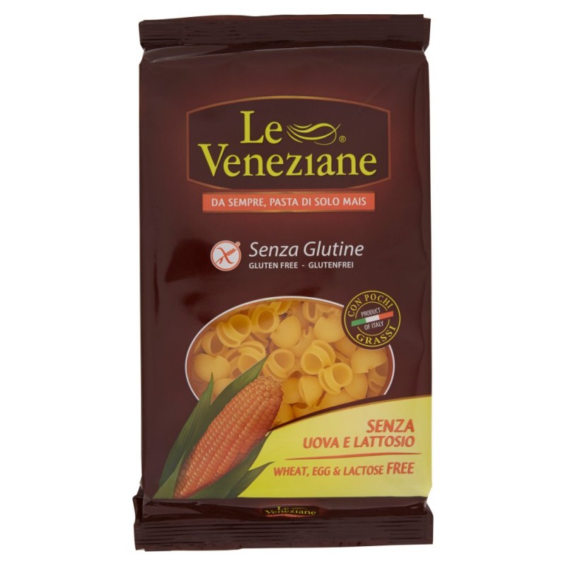 - Con mais italiano selezionato / / Dall'esperienza consolidata nei decenni da Molino di Ferro nella lavorazione del mais ha origine la pasta senza glutine 'Le Veneziane'. / La meticolosa selezione del miglior mais italiano, l'ottima tenuta in cottura e la proprieta' di trattenere il condimento garantiscono un primo piatto gustoso, alternativo e gratificante. / Ingredienti: Farina di mais, Emulsionanti: mono e digliceridi degli acidi grassi di origine vegetale