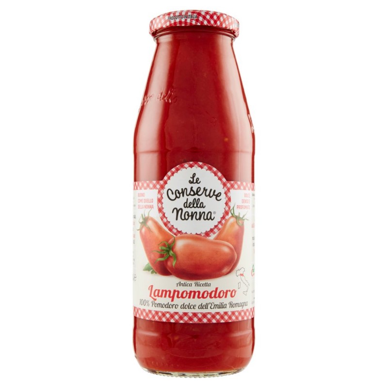 Solo pomodoro dell'Emilia Romagna coltivato con metodologie a basso impatto ambientale. / Lavorato appena raccolto. / / Qualita' Controllata / Produzione integrata rispettosa dell'ambiente e della salute. / / Passata tradizionale, naturalmente dolce e corposa, ideale abbinata alla pasta e a tutti i tuoi piatti. / Ingredienti: Pomodoro 99%, Sale, Prodotto in uno stabilimento che utilizza sedano