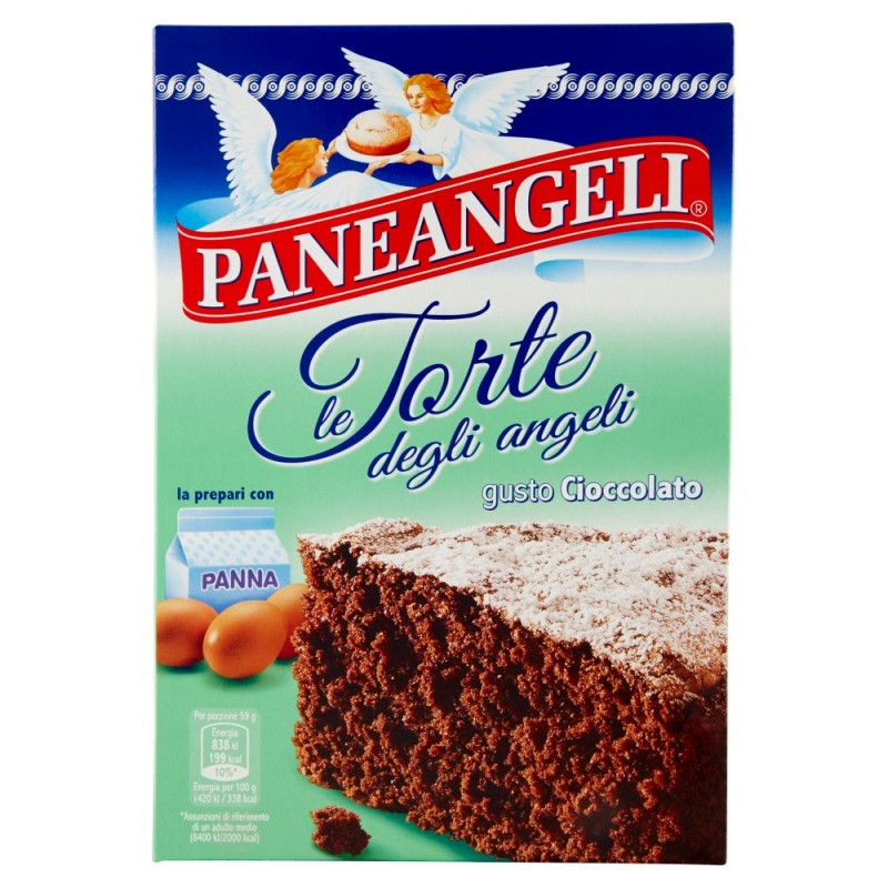 - Dall'esperienza Paneangeli nascono le Torte degli Angeli: torte dal gusto unico e dalla consistenza straordinariamente soffice e morbida, in goloso contrasto con la rustica croccantezza della superficie cosparsa di zucchero al velo. / Grazie all'esclusiva ricetta delle Torte degli Angeli puoi ritrovare la dolcezza della tradizione, il gusto ed il profumo delle cose buone fatte in casa con le tue mani e con ingredienti semplici e genuini come la panna e le uova. / Ingredienti: Miscela per l'impasto 395 g: zucchero, cioccolato comune magro in polvere 26% (zucchero, cacao magro in polvere), farina di grano tenero, fecola di patate, amido di frumento, sciroppo di glucosio, agenti lievitanti (gluconodeltalattone, carbonato acido di sodio, fosfato monocalcico), emulsionanti (esteri lattici di mono- e diglicerdi degli acidi grassi, esteri acetici di mono- e digliceridi degli acidi grassi), latte scremato in polvere, addensante (gomma di xanthan), aroma, Busta di zucchero a velo 10 g: zucchero impalpabile contenente amido di mais per uso dolciario (zucchero, amido di mais), Puo' contenere uova, frutta a guscio, soia