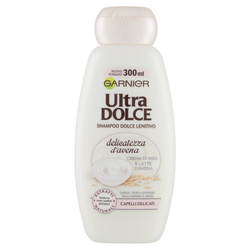 - Garnier Ultra Dolce crea la sua ricetta lenitiva e rispettosa, specialmente pensata per capelli e cuoio capelluto delicati, associando: la crema di riso, rinomata per le sue virtu' trattanti e protettive sui capelli; il latte d'avena, utilizzato nelle routine di bellezza delle pelli delicate e conosciuto per le proprieta' lenitive e addolcenti. I capelli sono idratati e avvolti in un dolce trattamento senza essere appesantiti. Sono morbidi, brillanti, di una dolcezza infinita al tatto e protetti su tutta la loro lunghezza. Da subito il cuoio capelluto e' lenito e ritrova tutto il suo comfort. / Ingredienti: 1100665 F - Ingredients:, Aqua / Water, Sodium Laureth Sulfate, Cocamidopropyl Betaine, Sodium Lauryl Sulfate, Glycerin, Glycol Distearate, Amodimethicone, Sodium Chloride, PPG-5-Ceteth-20, Fumaric Acid, Carbomer, Trideceth-6, Aloe Barbadensis Leaf Juice, Sodium Hydroxide, Avena Sativa Kernel Extract / Oat Kernel Extract, Coco-Betaine, Guar Hydroxypropyltrimonium Chloride, Citric Acid, Xanthan Gum, Oryza Sativa Starch / Rice Starch, Potassium Sorbate, Sodium Benzoate, Salicylic Acid, Cetrimonium Chloride, Linalool, Alpha-Isomethyl Ionone, Coumarin, Limonene, Hexyl Cinnamal, Benzyl Alcohol, Benzyl Salicylate, Parfum / Fragrance, (F.I.L. C216209/1)