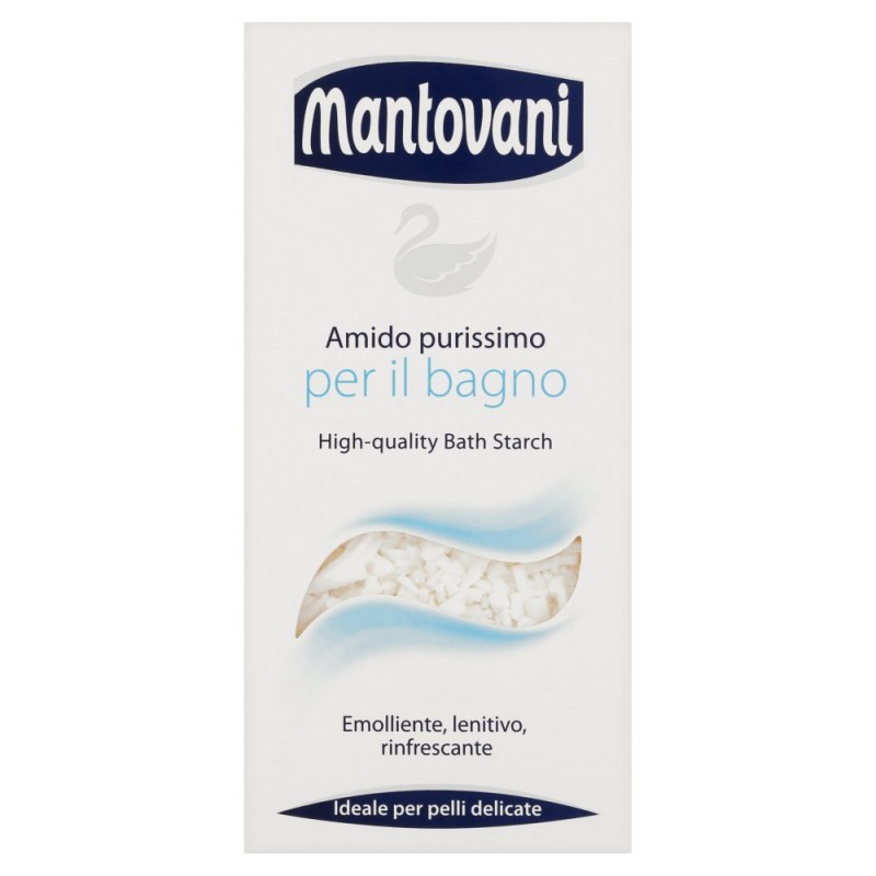 - L'Amido per il bagno Mantovani e' particolarmente indicato per chi ha la pelle delicata, secca o sensibile ed e' ideale per il bagno dei bambini. E' un prodotto naturale estratto da semi di cereali. / Grazie alle sue proprieta' emollienti aiuta a: / - lenire arrossamenti, prevenire irritazioni e dare sollievo alla pelle; / - proteggere l'equilibrio idrolipidico della cute. / Ha un effetto rinfrescante e tonificante sulla pelle accaldata. / Ingredienti: Triticum vulgare starch, Zea mays starch, Sodium propionate