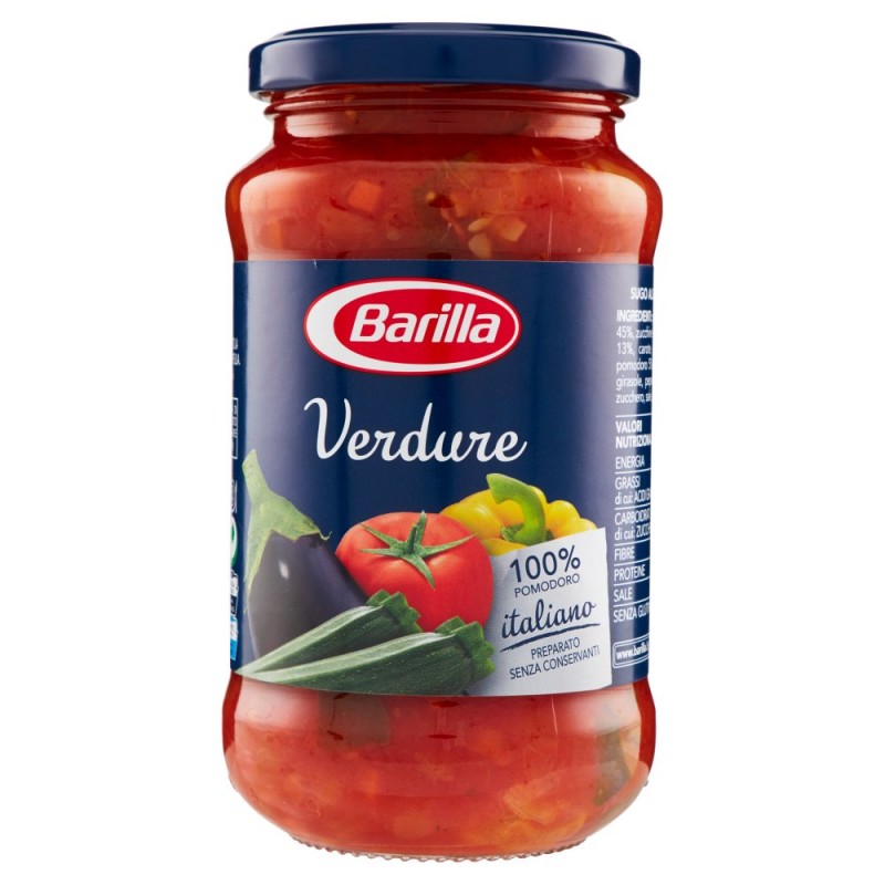 - Pomodoro italiano, peperoni, melanzane e zucchine si uniscono a un delicato soffritto per farti apprezzare pienamente il gusto e la corposita' delle verdure dell'orto. Preparato a regola d'arte e sempre senza l'aggiunta di conservanti, e' pronto per una pasta semplice e invitante. / Ingredienti: Polpa di pomodoro 45%, Zucchine 19%, Melanzane 13%, Carote, Concentrato di pomodoro 5%, Olio di semi di girasole, Peperoni gialli 2,7%, Zucchero, Sale, Cipolle, Sedano