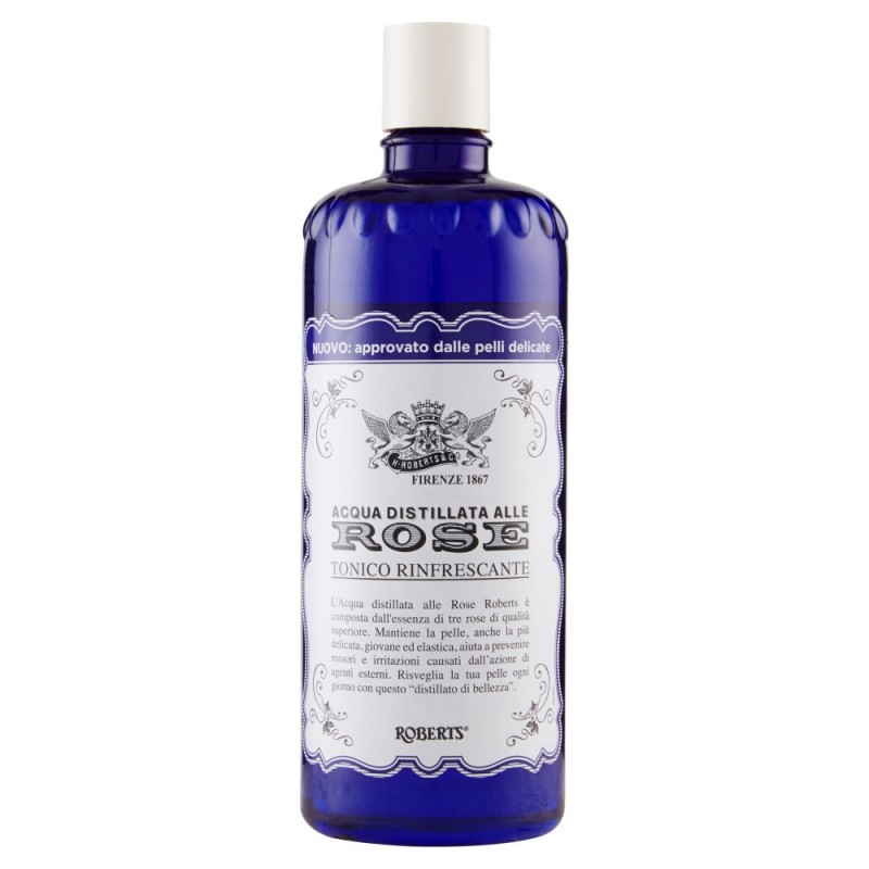 - L'Acqua distillata alle Rose Roberts e' composta dall'essenza di tre rose di qualita' superiore. Mantiene la pelle, anche la piu' delicata, giovane ed elastica, aiuta a prevenire rossori e irritazioni causati dall'azione di agenti esterni. Risveglia la tua pelle ogni giorno con questo 'distillato di bellezza'. / / Ideale dopo la pulizia di viso e collo, tonifica la pelle restituendole tutta la sua naturale freschezza e idratazione. La sua formula delicata, con l'essenza di nobili rose dalle proprieta' idratanti, tonificanti e rinfrescanti, aiuta a prevenire i rossori e le irritazioni causati da agenti esterni. / Ingredienti: Aqua, Rosa Gallica Flower Water, Rosa Centifolia Flower Extract, Rosa Canina Fruit Extract, Rosa Damascena Flower Extract, Glycerin, Propylene Glycol, Sodium Gluconate, Parfum, PEG-40 Hydrogenated Castor Oil, 2-Bromo-2-Nitropropane-1,3-Diol, Geraniol, Hydroxycitronellal, Citronellol
