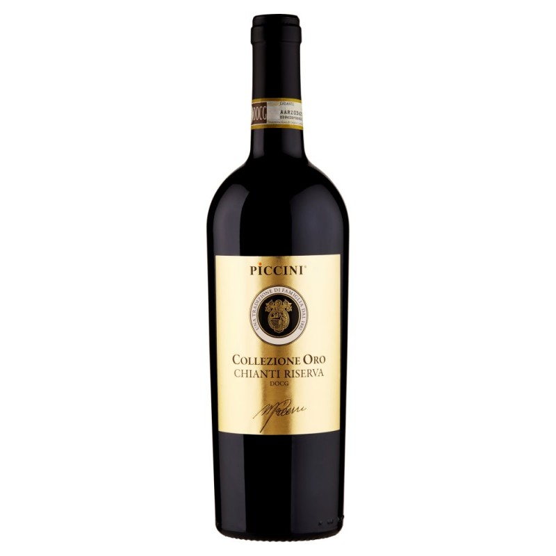 Collezione Oro Chianti Riserva DOCG, vino rosso italiano. / / Piccini forte di una tradizione di famiglia dal 1882 vanta una selezione di vini contemporanei ispirati dalla propria storia. Non e' un caso la scelta di chiamare questo vino 'Collezione Oro' perche' sin dal nome si evince la nostra volonta' di dar vita ad un Chianti Riserva unico. / / Chianti Riserva / Denominazione di Origine Controllata e Garantita / Ingredienti: Contiene solfiti