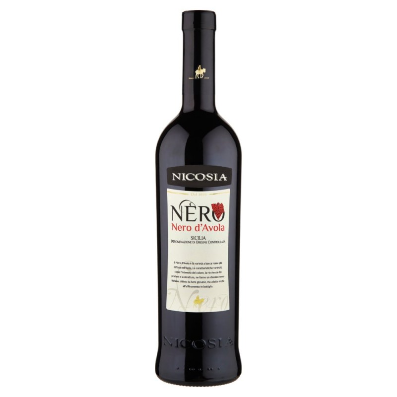 Nero Nero d'Avola Rosso Sicilia DOC, vino rosso italiano. / / Il Nero d'Avola e' la varieta' a bacca rossa piu' diffusa nell'isola. Le caratteristiche varietali, come l'intensita' del colore, la ricchezza dei profumi e la struttura, ne fanno un classico rosso italiano, ottimo da bere giovane, ma adatto anche all'affinamento in bottiglia. / / Sicilia / Denominazione di Origine Controllata / Ingredienti: Contiene solfiti