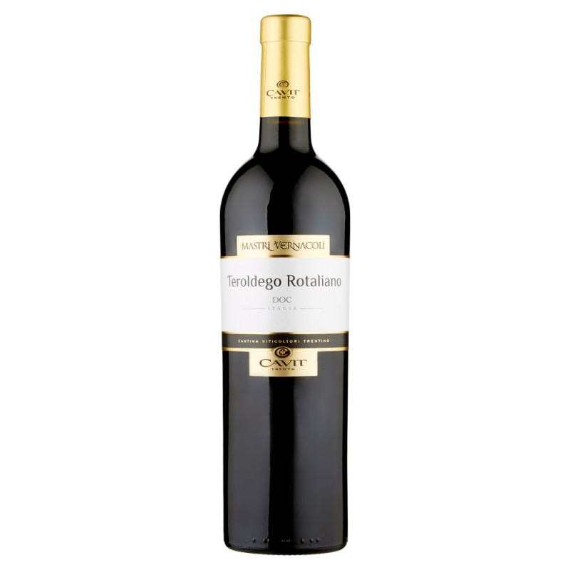 - Teroldego Rotaliano DOC, vino rosso italiano. / / Gli enologi Cavit, maestri di tradizione, lavorano ogni giorno alla ricerca di vini che esprimano al meglio la tipicita' delle nostre uve. / Il Teroldego, vino principe del Trentino e' un vitigno autoctono coltivato nella Piana Rotaliana. Ci offre un vino deciso, sapido, pulito. / / Zona di provenienza: Trentino / Caratteristiche: Vino rosso secco / / Teroldego Rotaliano / Denominazione di Origine Controllata / Ingredienti: Contiene solfiti