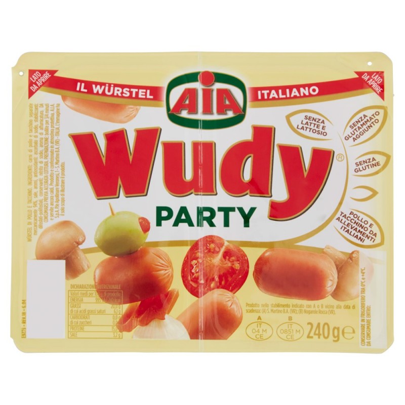 - Carni di pollo e tacchino separate meccanicamente 94%, Sale, Aromi, Antiossidanti: ascorbato di sodio, Stabilizzanti: difosfati-polifosfati, Conservanti: nitrito di sodio, Aroma di affumicatura